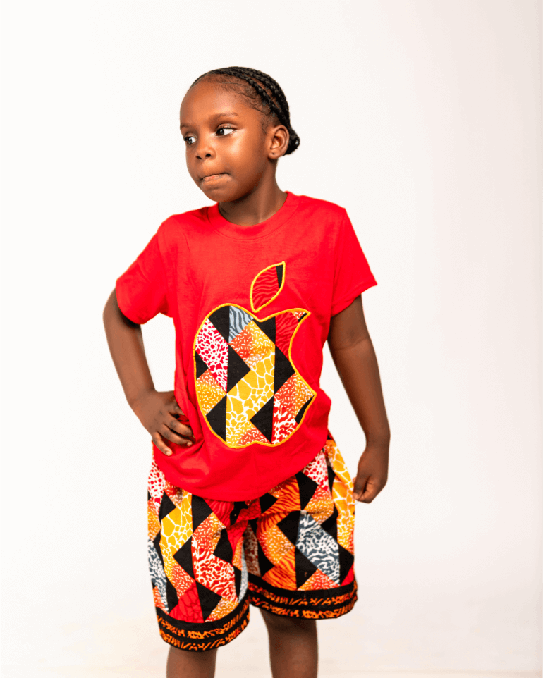 Unisex style T-shirts and shorts set. African kente pattern patchwork T-shirts. Immersed in the rich African culture, eye-catching patchwork print. Makes an excellent choice for both boys and girls that appreciates world class fashions with a touch of the unique African design.