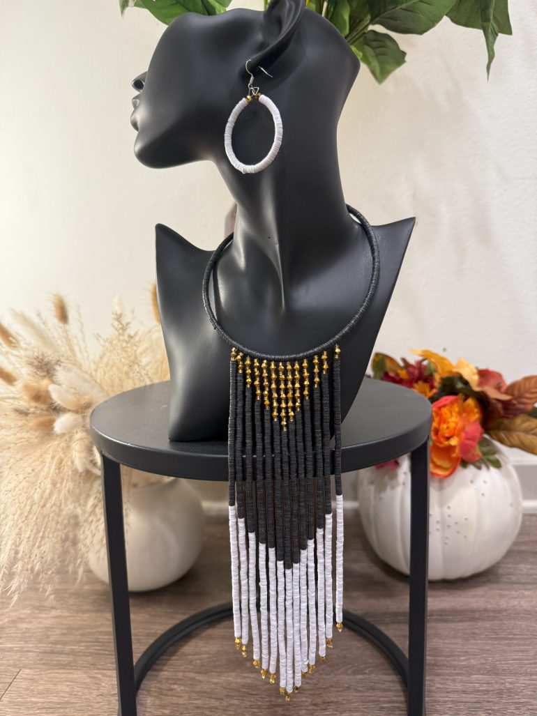 -36%Fashion chain choker collar necklace. Multiple twisted beads cluster choker. Necklace with earrings. Ethnic colorful beads, layered beads collar necklace. Africa chunky necklace.