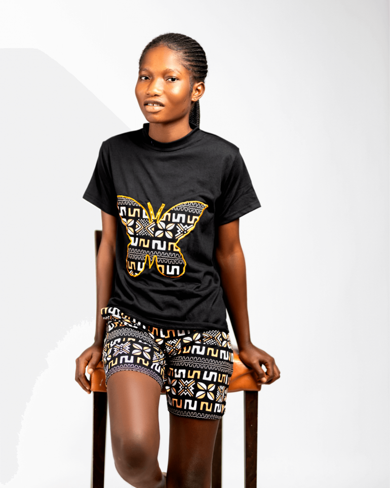 Unisex style T-shirts and shorts set. African kente pattern patchwork T-shirts. Immersed in the rich African culture, eye-catching patchwork print. Makes an excellent choice for both boys and girls that appreciates world class fashions with a touch of the unique African design.