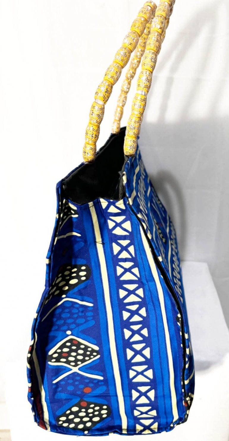 Kente/Ankara Print handbag for African American ladies. Some decorated with African beads. Outlook that goes with any outfit. A good fit for any occasion