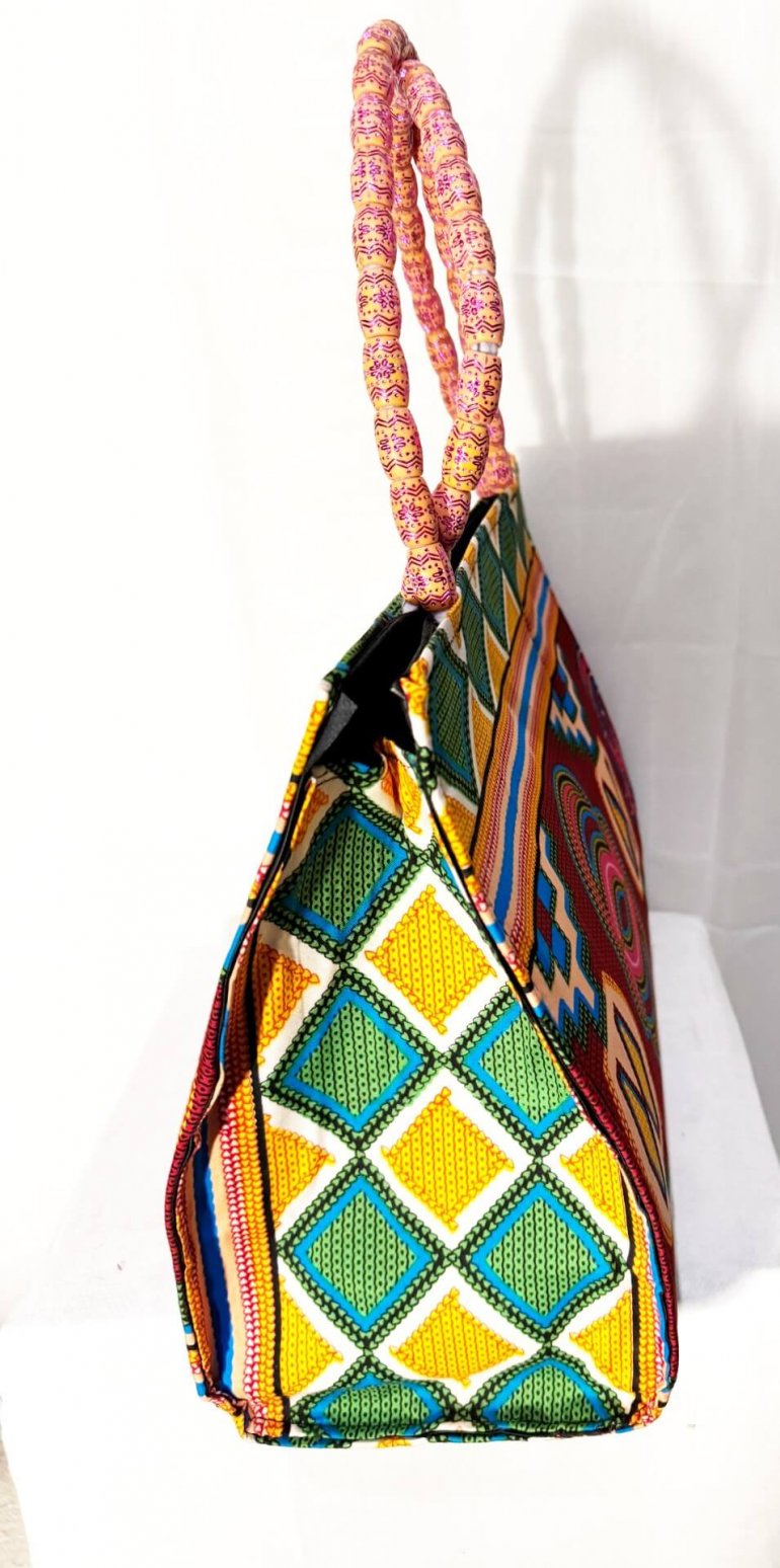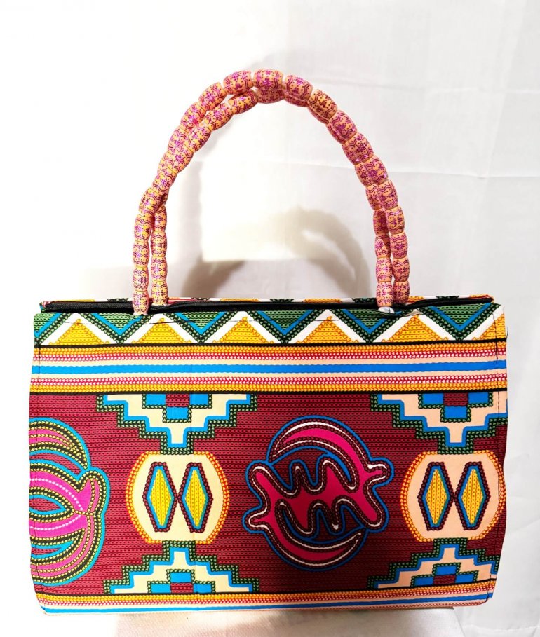 Kente/Ankara Print handbag for African American ladies. Some decorated with African beads. Outlook that goes with any outfit. A good fit for any occasion