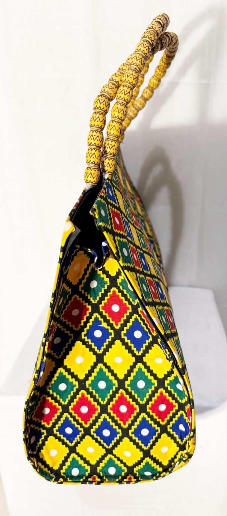 Kente/Ankara Print handbag for African American ladies. Some decorated with African beads. Outlook that goes with any outfit. A good fit for any occasion