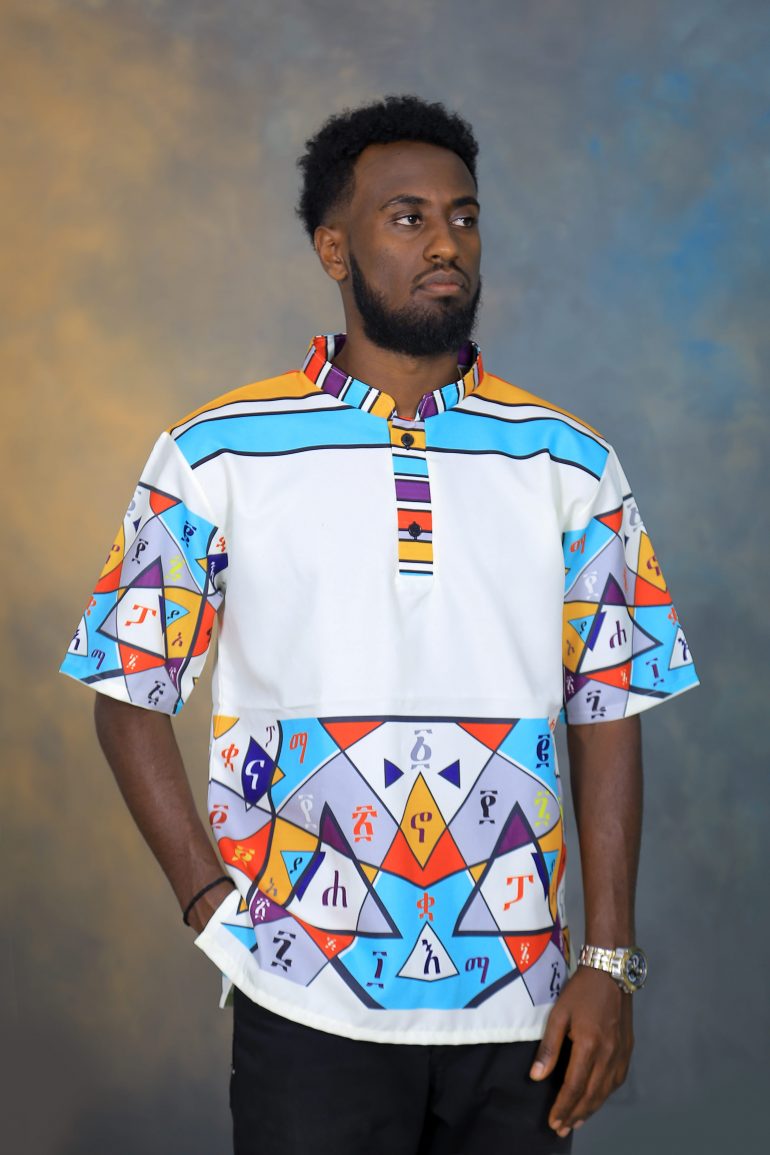 African men clothing top, Modern shirt with Habeshan touch, African men Attire