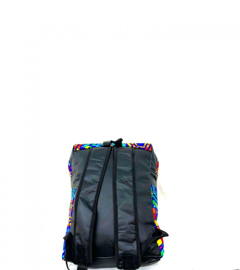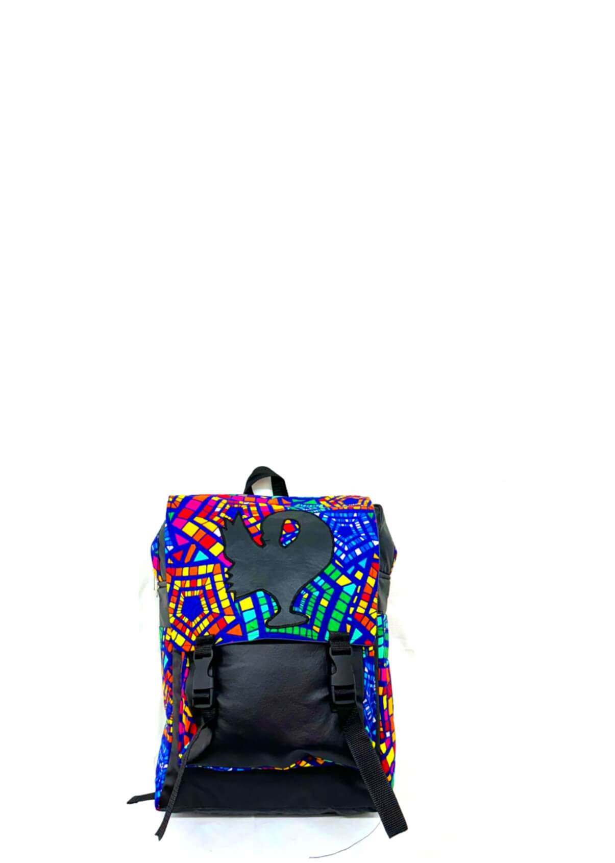 Multicolored kente fabric intertwined with soft leather for a lightweight tough backpack. Spacious, adjustable straps. Perfect for everyday use and travels