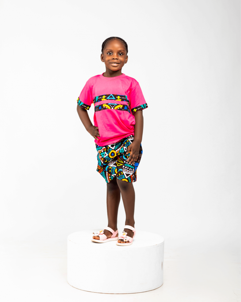 Unisex style T-shirts and shorts set. African kente pattern patchwork T-shirts. Immersed in the rich African culture, eye-catching patchwork print. Makes an excellent choice for both boys and girls that appreciates world class fashions with a touch of the unique African design.