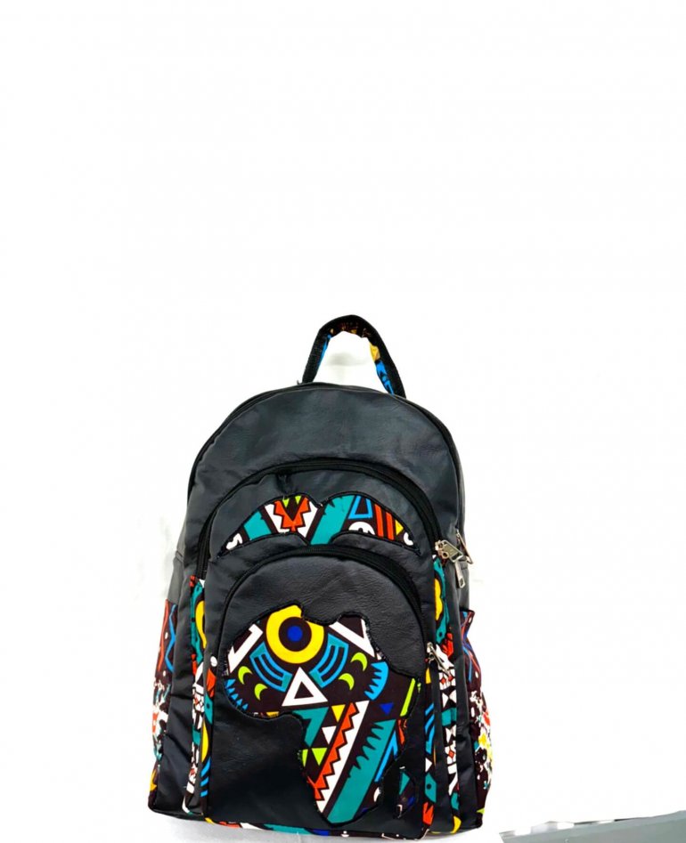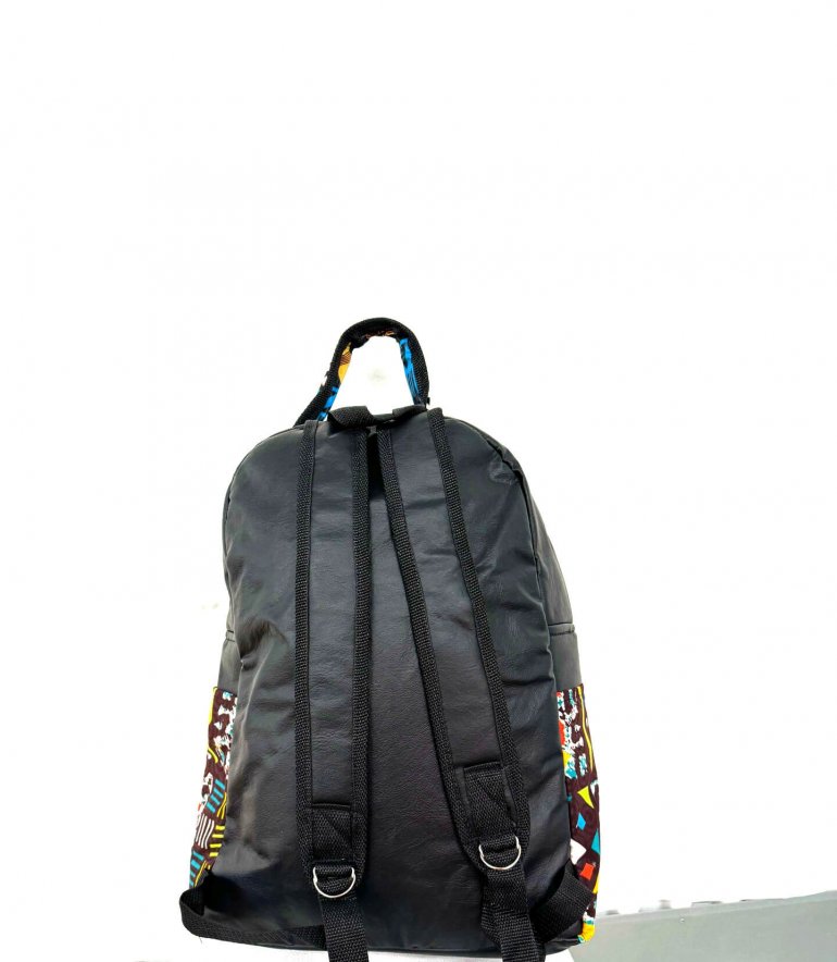 Multicolored kente fabric intertwined with soft leather for a lightweight tough backpack. Spacious, adjustable straps. Perfect for everyday use and travels