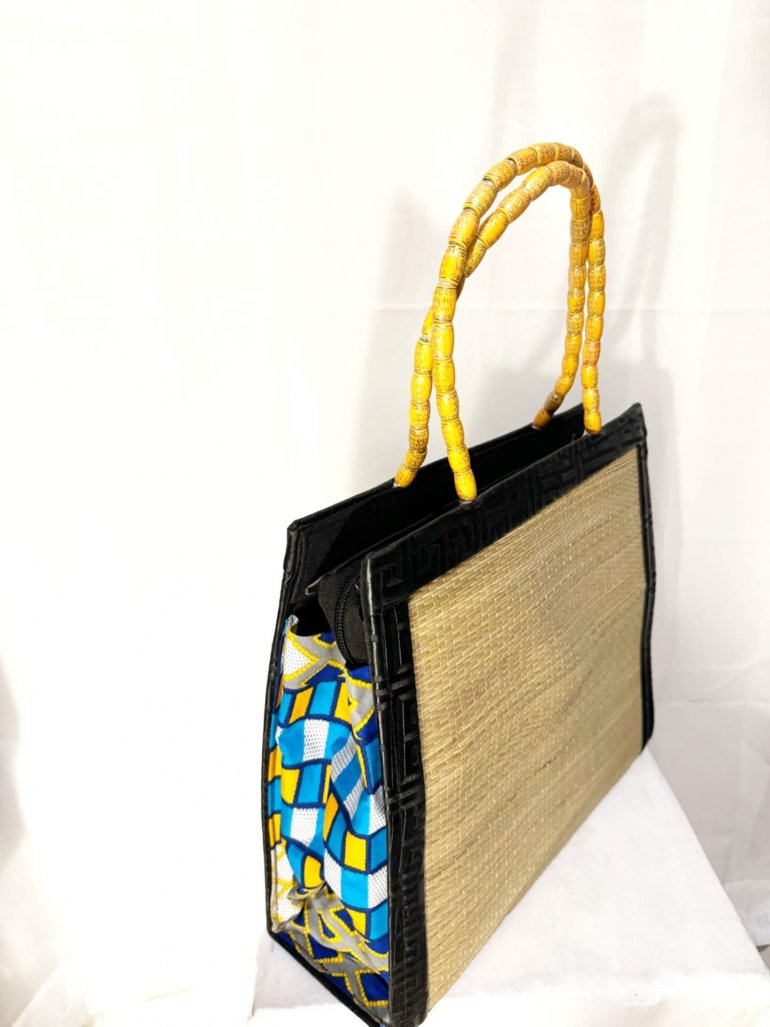 Unique Africa straw bag, mama Africa kente image, color matching African beaded handle, light weight and good quality