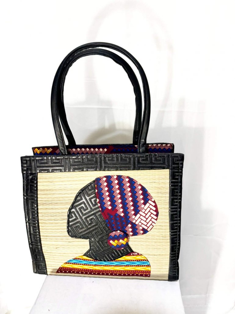 Unique Africa straw bag, mama Africa kente image, color matching African beaded handle, light weight and good quality