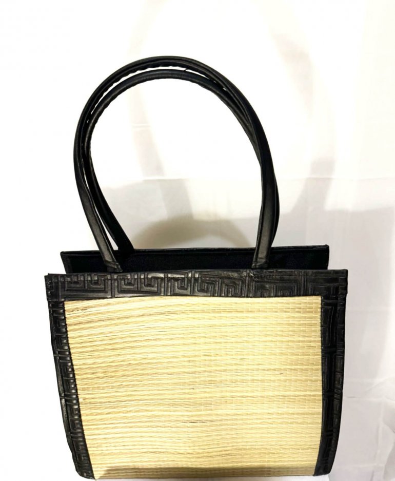 -45%Durable straw woven ladies’ bag with PU leather edges.
