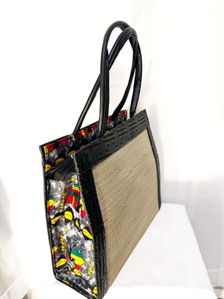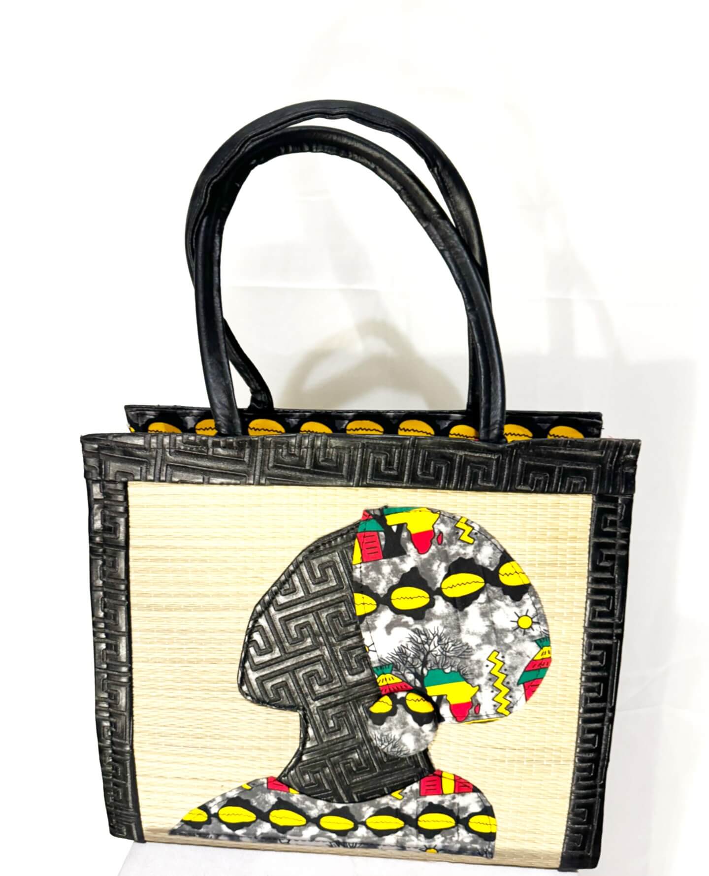 Unique Africa straw bag, mama Africa kente image, color matching African beaded handle, light weight and good quality
