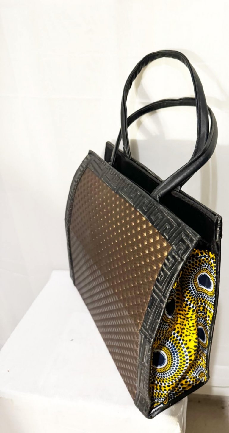 -45%Made of PU leather and light tough African fabric. Closure zipper