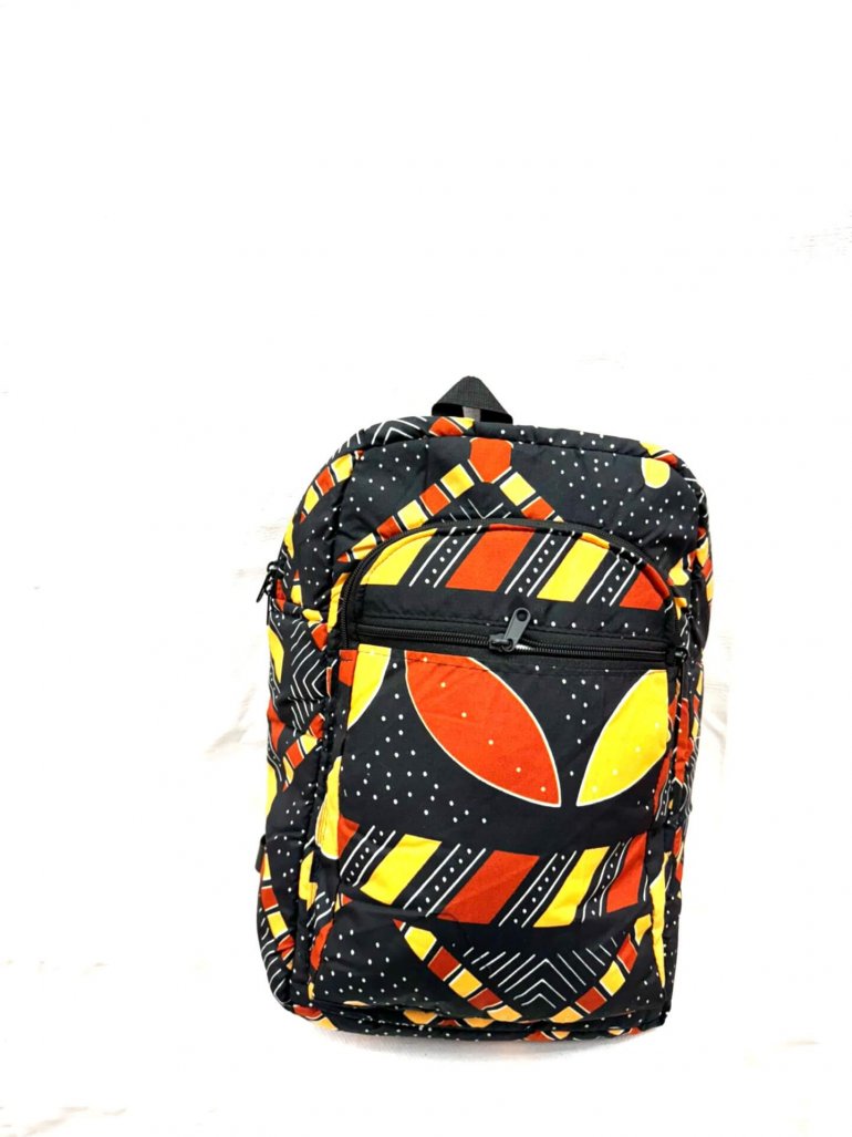 Multicolored kente fabric, lightweight and tough backpack. Spacious, adjustable straps. Perfect for everyday use and travels