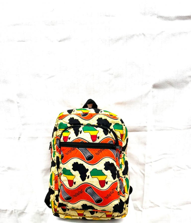 Multicolored kente fabric, lightweight and tough backpack. Spacious, adjustable straps. Perfect for everyday use and travels