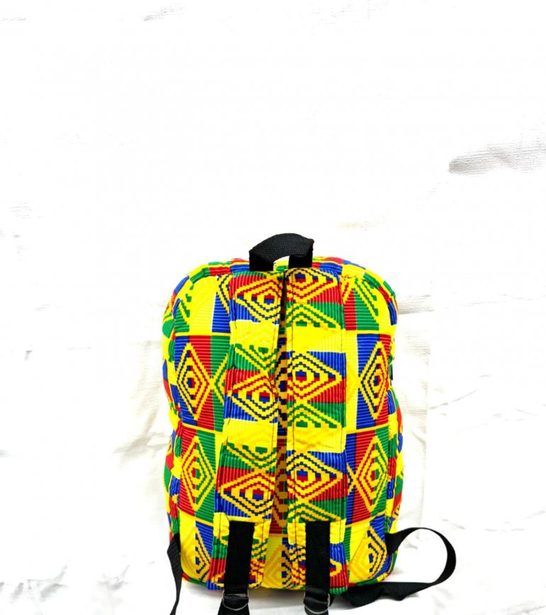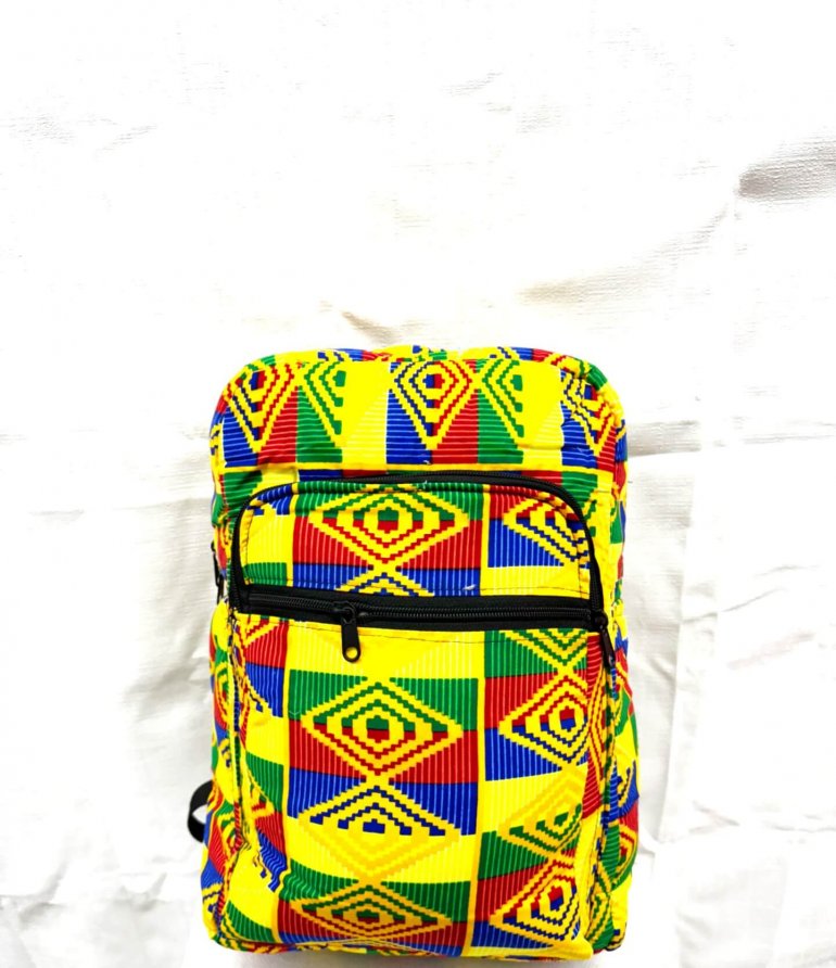 Multicolored kente fabric, lightweight and tough backpack. Spacious, adjustable straps. Perfect for everyday use and travels