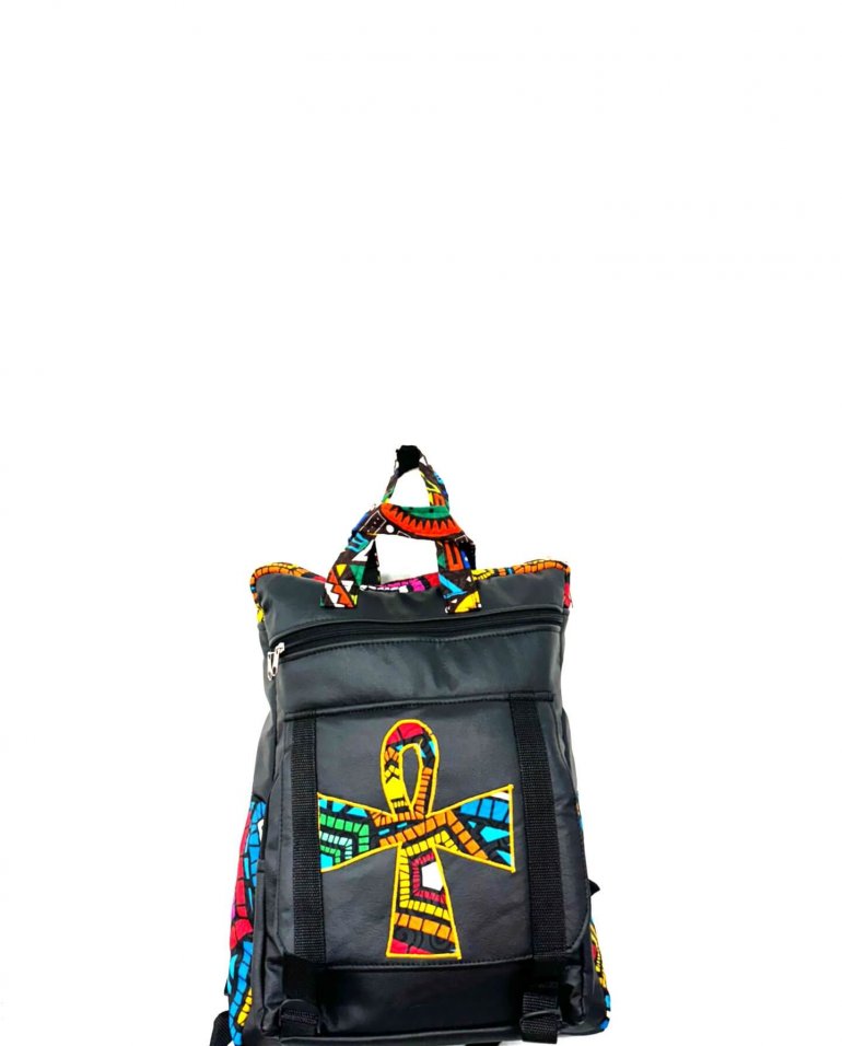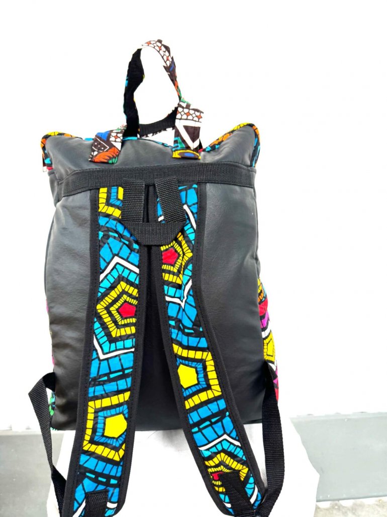 Multicolored kente fabric intertwined with soft leather for a lightweight tough backpack. Spacious, adjustable straps. Perfect for everyday use and travels