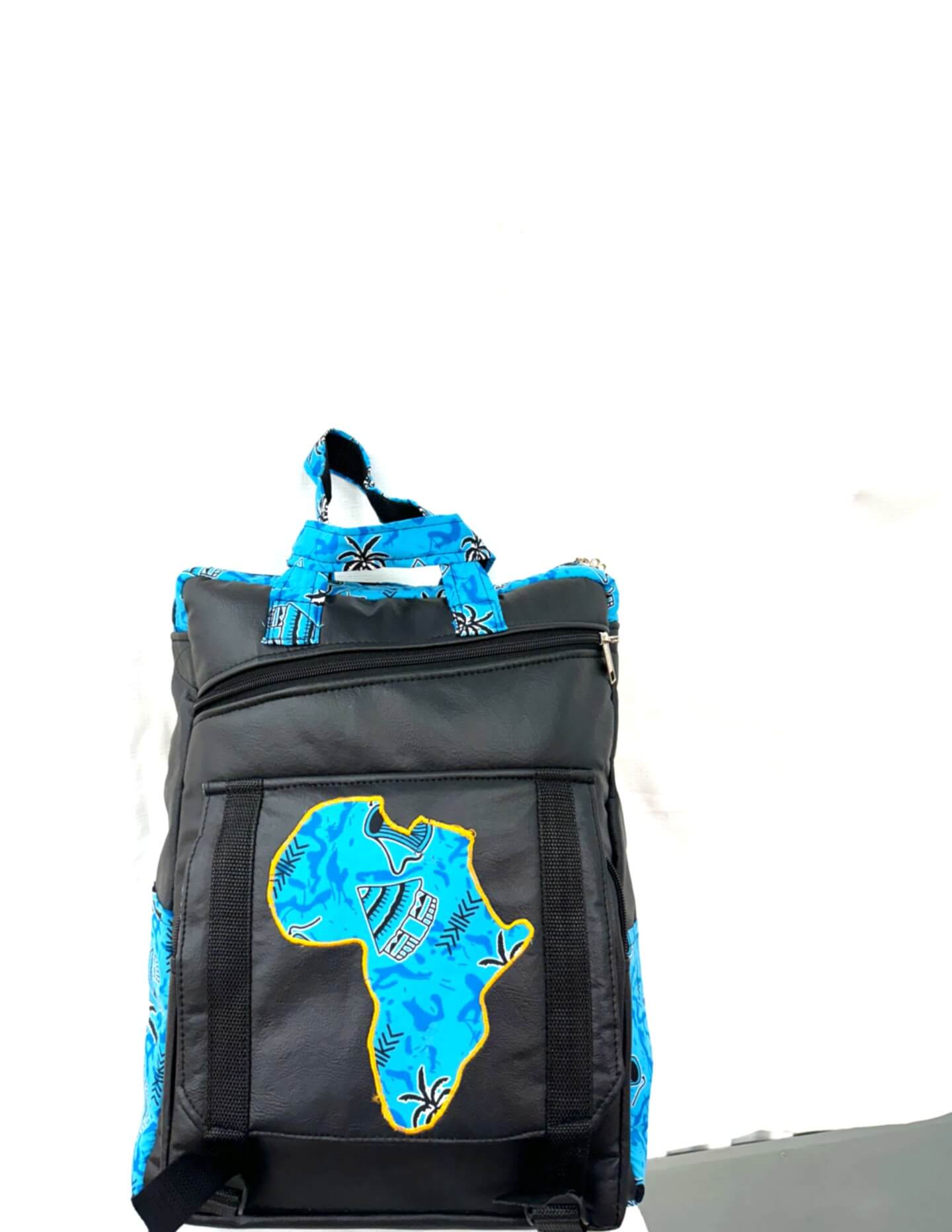 Multicolored kente fabric intertwined with soft leather for a lightweight tough backpack. Spacious, adjustable straps. Perfect for everyday use and travels