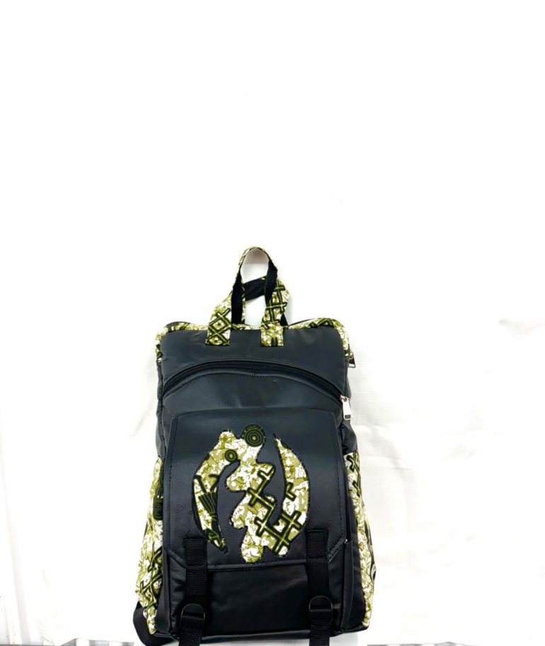 Multicolored kente fabric intertwined with soft leather for a lightweight tough backpack. Spacious, adjustable straps. Perfect for everyday use and travels