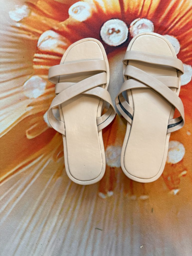 Comfortable flat sandals made of soft leather material, soft and lightweight, well-made rubber soles for all-day comfort.